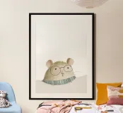 Simpatico topolino con occhiali, arte per la cameretta dei bambini, stanza dei bambini