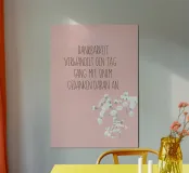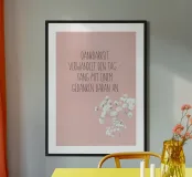 Porta un tocco di gratitudine nella tua stanza con il poster 'Dankbarkeit'. Questo design minimalista offre un messaggio ispiratore su uno sfondo rosa delicato, perfetto per creare un'atmosfera calda e accogliente. Ideale per la camera da letto o lo studio, è un regalo significativo per amici e familiari.