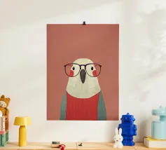 "Vi presentiamo il nostro papero elegante, che sfoggia occhiali alla moda e un allegro starnazzare. Questa stampa giocosa dona un tocco di estrosità e fascino a qualsiasi stanza. Perfetta per aggiungere un tocco divertente e spensierato al vostro arredamento!