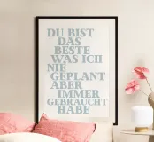 Porta un messaggio di amore e gratitudine nella tua casa con questa stampa artistica incorniciata in legno "Das Beste". Perfetta per la camera da letto, aggiunge un tocco di eleganza e profondità emotiva. Un regalo ideale per celebrare momenti speciali con le persone care.