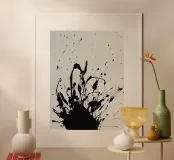 Gorgeous dynamic abstraction of black acrylics on soft neutral off-white canvas. Looks gorgeous just about anywhere. If you like this, check out my other designs for more in this collection.