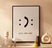 Questa stampa fine art ispirazionale presenta un disegno creativo di uno smiley che può essere visto da due lati, abbinato alle parole motivazionali "You Decide". Perfetta come regalo per gli ottimisti, come decorazione da parete in ufficio o a casa - un promemoria quotidiano per un atteggiamento positivo.