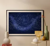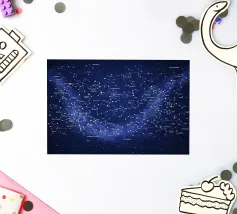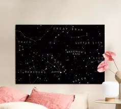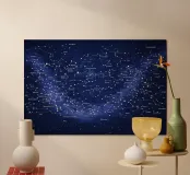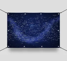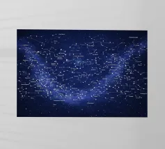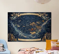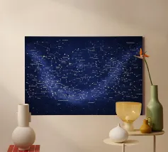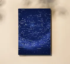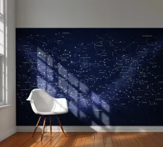 Una mappa dettagliata delle costellazioni in blu intenso che mostra la bellezza del cielo notturno con figure stellari chiaramente illustrate, costellazioni etichettate e dettagli celesti luminosi. Questa elegante mappa stellare fonde scienza e arte, creando un'atmosfera cosmica rilassante perfetta per interni moderni, spazi di studio o amanti dell'astronomia alla ricerca di decorazioni murali senza tempo e stimolanti.