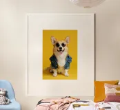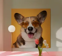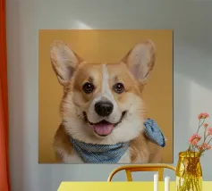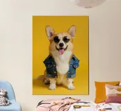 Scopri questa stampa artistica di un corgi vestito da denim, ideale per aggiungere un tocco di allegria a qualsiasi spazio. Perfetta per gli amanti dei cani e per decorare stanze come il soggiorno o la camera dei bambini, questa opera d'arte è un regalo unico per ogni occasione.
