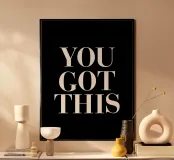 Date forza al vostro spazio con la stampa d'arte "You Got This". Questo design audace presenta un'elegante tipografia serif bianca su un elegante sfondo nero, creando una potente dichiarazione visiva. Perfetta per chi ha voglia di fare, per chi sogna e per chiunque abbia bisogno di una dose quotidiana di fiducia, questa versatile opera d'arte aggiunge un tocco di raffinatezza e incoraggiamento a qualsiasi ambiente. Il lettering pulito ed elegante fa sì che il messaggio risalti, servendo da costante promemoria della vostra forza interiore e delle vostre capacità. Lasciate che questo pezzo accattivante vi ispiri ad affrontare le sfide a testa alta e ad abbracciare il vostro potenziale.