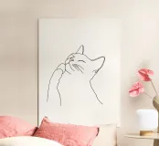 Disegno lineare minimalista di un gatto felice | Arte astratta moderna poster
