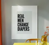 Cerchi un tocco di umorismo e tenerezza per la tua casa? Questo art print in stile minimalista è perfetto per ogni genitore moderno. "Real Men Change Diapers" non è solo un messaggio divertente, ma una celebrazione del ruolo dei papà nella cura dei bambini. Ideale per la nursery o come regalo per un neogenitore, questo pezzo d'arte in legno porta un messaggio importante con uno stile accattivante e contemporaneo. Fatto per durare nel tempo, è una scelta fantastica per chi ama il design e la funzionalità. Box, camera da letto, o salotto? Questo art print si adatta a ogni spazio! Che ne dici di spiccare con un pezzo unico, in grado di strappare un sorriso a chiunque? Non lasciarti sfuggire l'occasione di decorare il tuo ambiente con stile e buon umore!