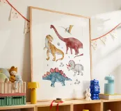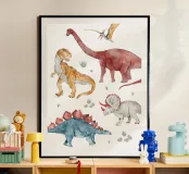 Porta un tocco di storia e meraviglia nella tua casa con questo splendido poster in stile acquello di dinosauri. Perfetto per la camera dei bambini, un asilo o anche come decorazione originale per un soggiorno, questo print è un’ottima scelta per gli amanti della paleontologia e della natura. Cattura l’immaginazione dei più piccoli e offre un’atmosfera giocosa e divertente. La cornice in legno aggiunge un tocco elegante e rende il quadro subito pronto per essere appeso. Un regalo ideale per un compleanno o una festa di benvenuto! Non perderti questa creazione unica!