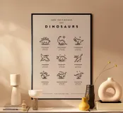 Scopri il fantastico mondo dei dinosauri con questo bellissimo quadro in legno! Perfetto per la stanza dei più piccoli o come decorazione stilosa per gli amanti della paleontologia. Ogni dettaglio rappresenta un dinosauro unico, rendendo il tuo spazio educativo e accattivante. La stampa in bianco e nero con cornice di legno si abbina facilmente a diversi stili d’arredo. Ideale per regali di compleanno, per chi ama i dinosauri o semplicemente per aggiungere un tocco di personalità alla tua casa! Resistente e di qualità, questo pezzo intrigrante sarà sicuramente un argomento di conversazione.
