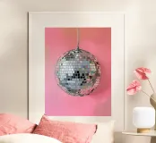 Disco Ball argento su rosa poster con telaio in legno