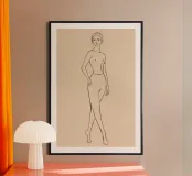 Disegno lineare di donna nuda in piedi poster