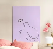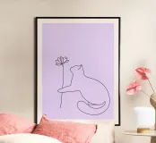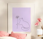Disegno lineare minimalista di un gatto con un fiore | Abstra moderno poster