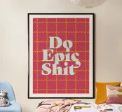 Fate una dichiarazione con questa audace e divertente citazione "Do Epic Shit". Una vibrante tipografia su un vivace e moderno sfondo a scacchi.