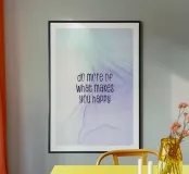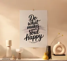 Poche parole e tanta verità! Un design che si adatta al motto della vita. FAI DI PIÙ DI CIÒ CHE TI RENDE FELICE. Fai di più di ciò che ti rende felice! Una tipografia minimalista con un tocco di colore versato addolcisce la vostra giornata.