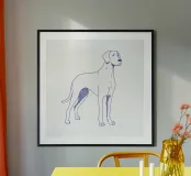 Disegno al tratto blu di un alano. Il motivo del cane è più adatto su sfondi molto chiari.