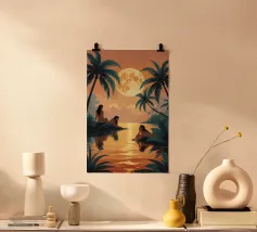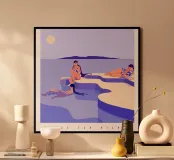 Dolce Far Niente cattura la beata arte del dolce far niente, la celebrazione del tempo libero e della tranquillità. In un paesaggio minimalista, quest'opera d'arte ritrae donne immerse in momenti sereni di nuoto, ozio e semplice esistenza. Le linee pulite e le forme organiche evocano la bellezza senza tempo della natura, mentre la semplicità della composizione sottolinea la gioia di rallentare ed essere presenti. La tavolozza dei colori, tenue ma ricca, rispecchia l'equilibrio tra calma e vitalità, invitando gli spettatori ad abbracciare il lusso della pausa e della connessione con se stessi.