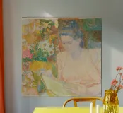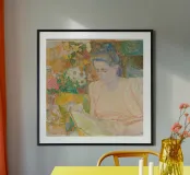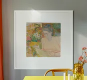 Uno straordinario dipinto puntinista dell'artista olandese Jan Toorop, realizzato nel 1900. L'opera raffigura una donna serena e profondamente assorta nella lettura, circondata da un'esplosione di colori e motivi intricati. L'uso magistrale di Toorop di punti e linee crea un'atmosfera onirica, mescolando tenui pastelli con vivaci fiori e tessuti decorativi. L'opera riflette l'influenza del simbolismo e del neoimpressionismo, mostrando lo stile unico di Toorop. Una composizione accattivante che immerge lo spettatore in un mondo di luce, texture e delicate emozioni.