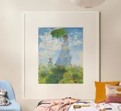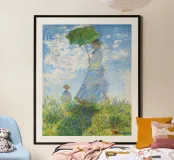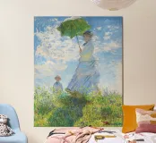 Donna con ombrellino di Claude Monet (1875) è un vibrante capolavoro impressionista che cattura una ventilata giornata estiva. Il dipinto raffigura la moglie di Monet, Camille, che tiene in mano un ombrellino verde, sullo sfondo di un cielo luminoso e di un campo di fiori selvatici. Le pennellate sciolte di Monet e la palette di colori luminosi evocano il movimento del vento e della luce, creando un'atmosfera vivace e ariosa. Questa riproduzione di alta qualità è perfetta per aggiungere un tocco di eleganza e bellezza ispirata alla natura a qualsiasi ambiente, ideale per gli amanti dell'arte e dell'impressionismo.