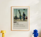Scopri la stampa artistica minimalista 'DOPE 2015', incorniciata in legno, perfetta per decorare il tuo spazio con un tocco moderno. Questo pezzo d'arte rende omaggio al film e aggiunge un elemento di stile alla tua casa o al tuo ufficio.