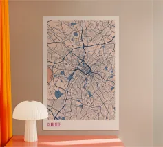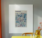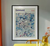 Una mappa della città di Dortmund elegante e minimalista, che evidenzia le linee e le strutture urbane della metropoli della Ruhr con colori moderni e chiari. Ideale per gli amanti delle mappe urbane e del design senza tempo.