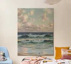 Arte murale del paesaggio nuvoloso, decorazione su tela del paesaggio nuvoloso.