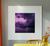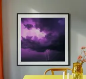Drammatici fulmini illuminano un cielo viola e tempestoso poster