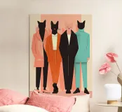 Un ritratto di gruppo che gioca con l'identità, lo stile e la tranquilla sicurezza. Forme familiari vestite con silhouette sartoriali stanno insieme, unite ma inconfondibilmente individuali. La tavolozza tenue e la composizione pulita enfatizzano la presenza rispetto all'espressione: una dichiarazione visiva sull'appartenenza, l'atteggiamento e il linguaggio non detto dello stile.