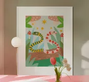 Questa accattivante illustrazione presenta due serpenti intrecciati che creano un simbolo di potere, trasformazione e mistero.