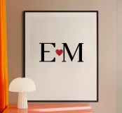 Questo romantico disegno con le iniziali E e M, collegate da un cuore rosso, è perfetto per le coppie, gli innamorati o come idea regalo. Che si tratti di un poster, di una T-shirt, di una tazza o di un cuscino, è un'espressione elegante dell'amore e dell'unione. Minimalista, significativo e unico.