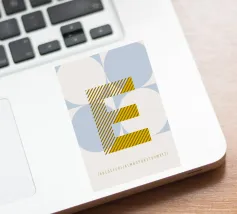 E-TYPEFACE in un design senza tempo - poster tipografico con colori vivaci e un gioco di forme sullo sfondo.