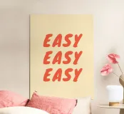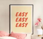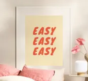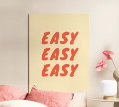 Stampa tipografica minimalista con la parola ripetuta "Easy" in caratteri caldi e dipinti a mano. Su uno sfondo morbido e neutro, questo disegno incoraggia un ritmo dolce, un'energia calma e una mentalità rilassata. Perfetto per interni moderni, scandinavi e accoglienti, dona una presenza rassicurante e rilassante a soggiorni, camere da letto, uffici o spazi creativi.