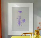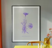Poster con fiori di echinacea - Stampa botanica viola in stile illustrazione vintage, opera d'arte moderna ispirata alla stampa Riso per una decorazione murale di tendenza.