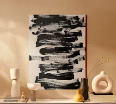 "Echoes of Emotion" cattura il momento di quiete tra il controllo e il caos. Un'energia cruda, quasi fisica, si dispiega in pennellate potenti e ritmiche - nero su bianco, come un'eco di tensioni interiori. La texture ricorda la lotta tra l'espressione e la costrizione, il dolore e la bellezza. Minimalista, ma piena di movimento, quest'opera è un poema visivo sull'intensità dei sentimenti umani. Ideale per ambienti che devono emanare profondità, chiarezza e forza emotiva allo stesso tempo.