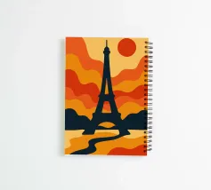 Immergetevi in un'atmosfera calda e poetica con questa vibrante illustrazione della Torre Eiffel al tramonto. Con le sue linee ondulate e le tonalità arancioni, questo poster trasforma l'iconico monumento in un'opera d'arte davvero retro-moderna. Perfetto per arricchire qualsiasi interno con un tocco parigino audace e di design.
