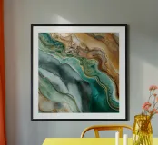 Elegante pittura a inchiostro finto marmo nei colori verde acqua, arancione e oro. Carta da parati sofisticata e contemporanea che vanta un affascinante gioco di texture e colori, che ricorda l'inchiostro fluido marmorizzato. Facendo eco alla bellezza espressiva dell'arte astratta, gli splendidi strati d'inchiostro si muovono in modo vibrante, trasformando istantaneamente qualsiasi prodotto in uno spettacolo d'arte moderna. Incarnando il perfetto connubio tra la sensibilità del design moderno e le armonie cromatiche, questo disegno affascina con il suo fascino visivo dinamico.