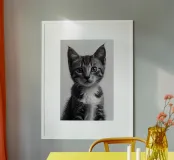 Questo suggestivo ritratto in bianco e nero di un giovane gattino cattura perfettamente la semplice eleganza e la grazia dell'animale. I lineamenti delicati e gli occhi grandi e attenti del gattino sono enfatizzati dallo sfondo neutro, che crea un'atmosfera calma e minimalista. Questo quadro è ideale per i salotti moderni o le camere dei bambini e aggiunge un tocco di classe e armonia a qualsiasi ambiente. Per gli amanti dei gatti, questo ritratto è un'opera d'arte senza tempo che irradia la bellezza e la serenità di un giovane animale.