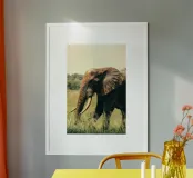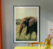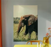 L'elefante ondeggia lentamente il suo corpo massiccio mentre pascola, tirando su ciuffi di erba verde fresca con la sua forte proboscide. I suoi occhi dolci e i suoi movimenti calmi riflettono una forza tranquilla, mentre il ritmo del suo nutrimento riecheggia la pacifica armonia della natura selvaggia".