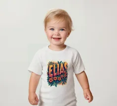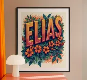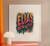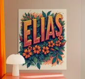 Un nome biblico incastonato in un motivo floreale dai colori vivaci.
