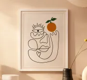 "Elmar" è un'affascinante opera d'arte raffigurante un volto con in mano un'arancia, che emana un'atmosfera giocosa ed estiva. Il suo design minimalista e la sua composizione spensierata lo rendono un'aggiunta perfetta a qualsiasi casa, soprattutto nei mesi più caldi. Con le sue linee semplici e il tocco di colore vivace, "Elmar" trasmette un senso di freschezza e gioia, rendendola una stampa estiva ideale per il vostro spazio.