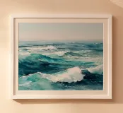 Swells of deep green and midnight blue rise and tumble across a horizonless sea. The movement is powerful yet graceful, layered with subtle gradients and sparkling crests. A moment suspended between storm and serenity—alive with motion, shaped by light.
