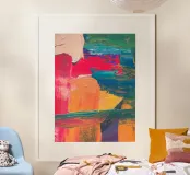 Tratti audaci di colori vivaci come il rosso, il giallo, il verde e il blu creano un'energica composizione astratta. Il gioco delle diverse tonalità aggiunge profondità e dinamismo all'esperienza visiva.