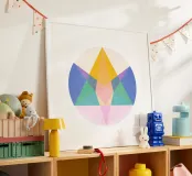"Colori astratti e forme geometriche consapevoli."