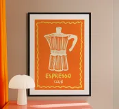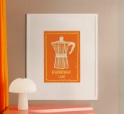 Aggiungi un tocco di vivacità alla tua cucina con questa stampa artistica incorniciata "Espresso Orange". Realizzata con colori accesi e design accattivante, è perfetta per gli amanti del caffè o come decorazione per una casa moderna. Un regalo ideale per gli appassionati di caffè o come decorazione da cucina per i tuoi amici.