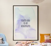 Poche parole e tanta verità! Un disegno che si adatta al motto della vita. OGNI GIORNO È UN'AVVENTURA. Ogni giorno è un'avventura! Una tipografia minimalista con un tocco di colore versato addolcisce la vostra giornata.