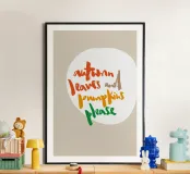 Brush Lettering Motiv "Fall leafs and pumpkins please" in knalligen Herbstfarben