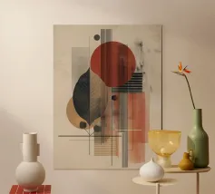 Questa composizione cattura il delicato equilibrio tra geometria e natura. Cerchi audaci e linee verticali si innalzano con forza architettonica, mentre le foglie autunnali scivolano delicatamente alla base, aggiungendo calore e fragilità. L'interazione tra la struttura nitida e la morbidezza organica evoca una tranquilla riflessione sul cambiamento, la stabilità e il passare del tempo. È un'opera moderna e senza tempo, astratta ma profondamente radicata nel ritmo familiare dell'autunno.
