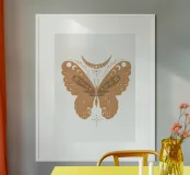 Elegante e mistico, questo disegno di una farfalla decorata con simboli lunari e dettagli di stelle aggiunge un tocco di magia e armonia a qualsiasi ambiente. Ideale per decorazioni murali, cuscini, stampe e accessori, è perfetto per chi ama l'estetica boho e cerca un'atmosfera rilassante e naturale nella propria casa.
