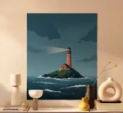Tra onde turbolente e cieli cupi, un faro solitario si erge saldo. Quest'opera d'arte cattura la cruda potenza della natura e la forza tranquilla di una guida incrollabile. La calda terracotta del faro crea un contrasto sorprendente con il blu intenso e lunatico del mare, creando un punto focale drammatico ma pieno di speranza. Lasciate che questo pezzo sia un simbolo della vostra resilienza, per ricordarvi che anche nei mari più agitati c'è una luce che non si spegne mai. Trasformate il vostro spazio con questo potente messaggio di speranza e forza d'animo, perfetto per qualsiasi ambiente che necessiti di un tocco di ispirazione.