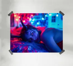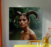 I suoi occhi spalancati brillano come se si fosse appena svegliata da un sogno. Le gocce sulla sua pelle brillano come luce liquida e il suo sguardo, sensuale e penetrante, cattura i segreti della foresta. Il tempo sembra essersi fermato, l'acqua sussurra silenziosamente storie. La nebbia porta via i suoi pensieri mentre affonda nel tocco fresco dell'acqua. Un momento fugace, pieno di infinita bellezza.
