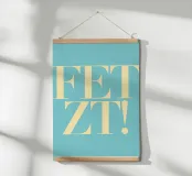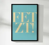 L'illustrazione minimalista mostra la scritta "FETZT!" in lettere maiuscole giallo pastello su un morbido sfondo turchese. "FETZT!" è un'espressione allegra e infantile che in tedesco significa "TOLL!" ed esprime uno stato d'animo positivo ed energico. I colori pastello e la tipografia chiara conferiscono all'illustrazione un'estetica moderna e giocosa, perfetta per temi come la gioia, l'infanzia e l'ottimismo. Questa illustrazione allegra è ideale per progetti che emanano un tocco di leggerezza e di energia allegra.